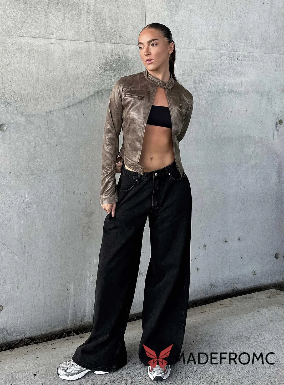 Black washed, belt looped waist, button & zip closure, four pockets, branded patch at back